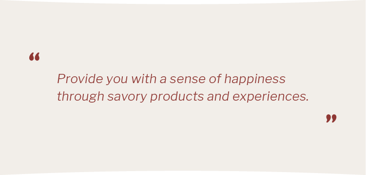 Provide you with a sense of happiness through savory products and experiences.